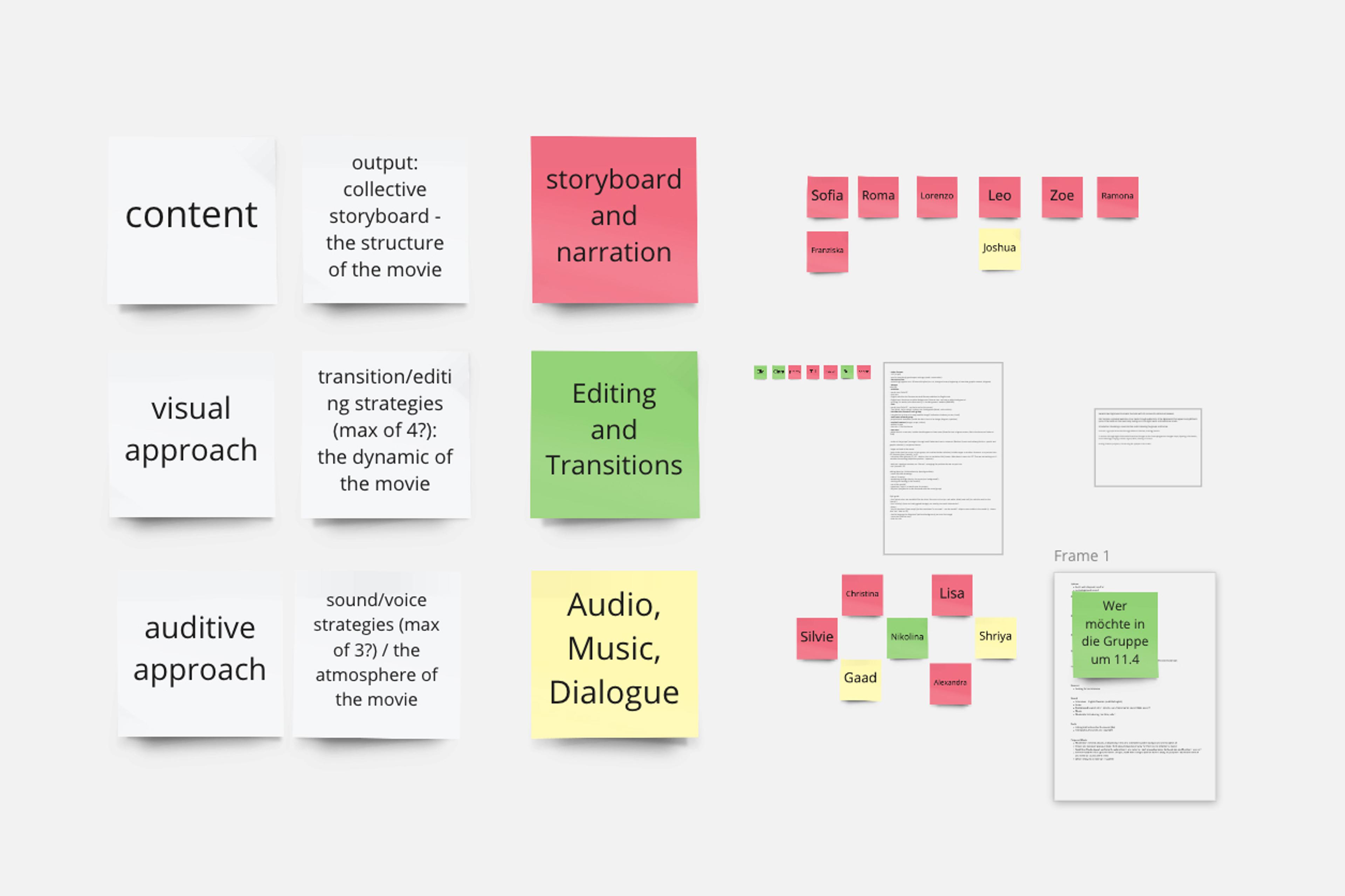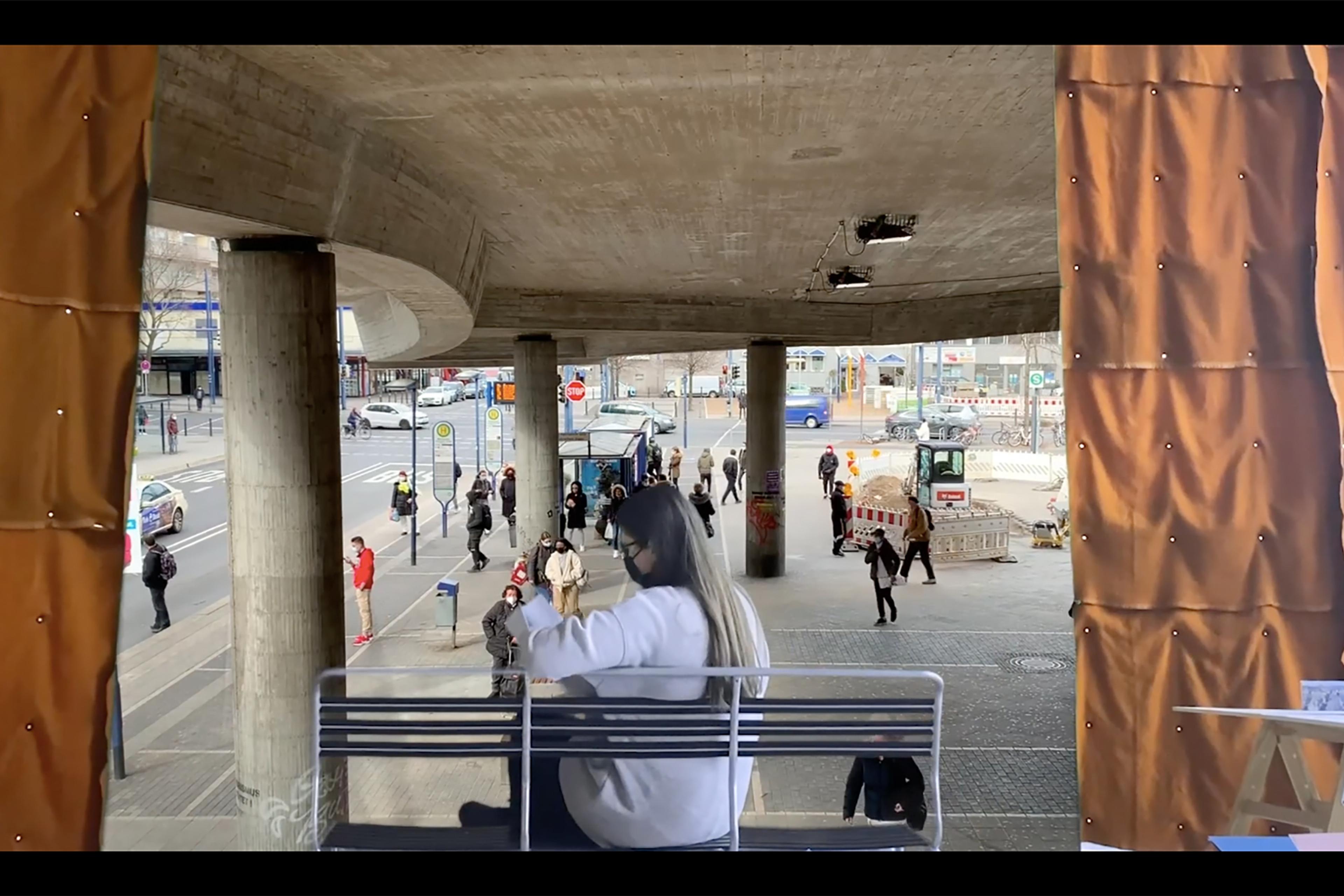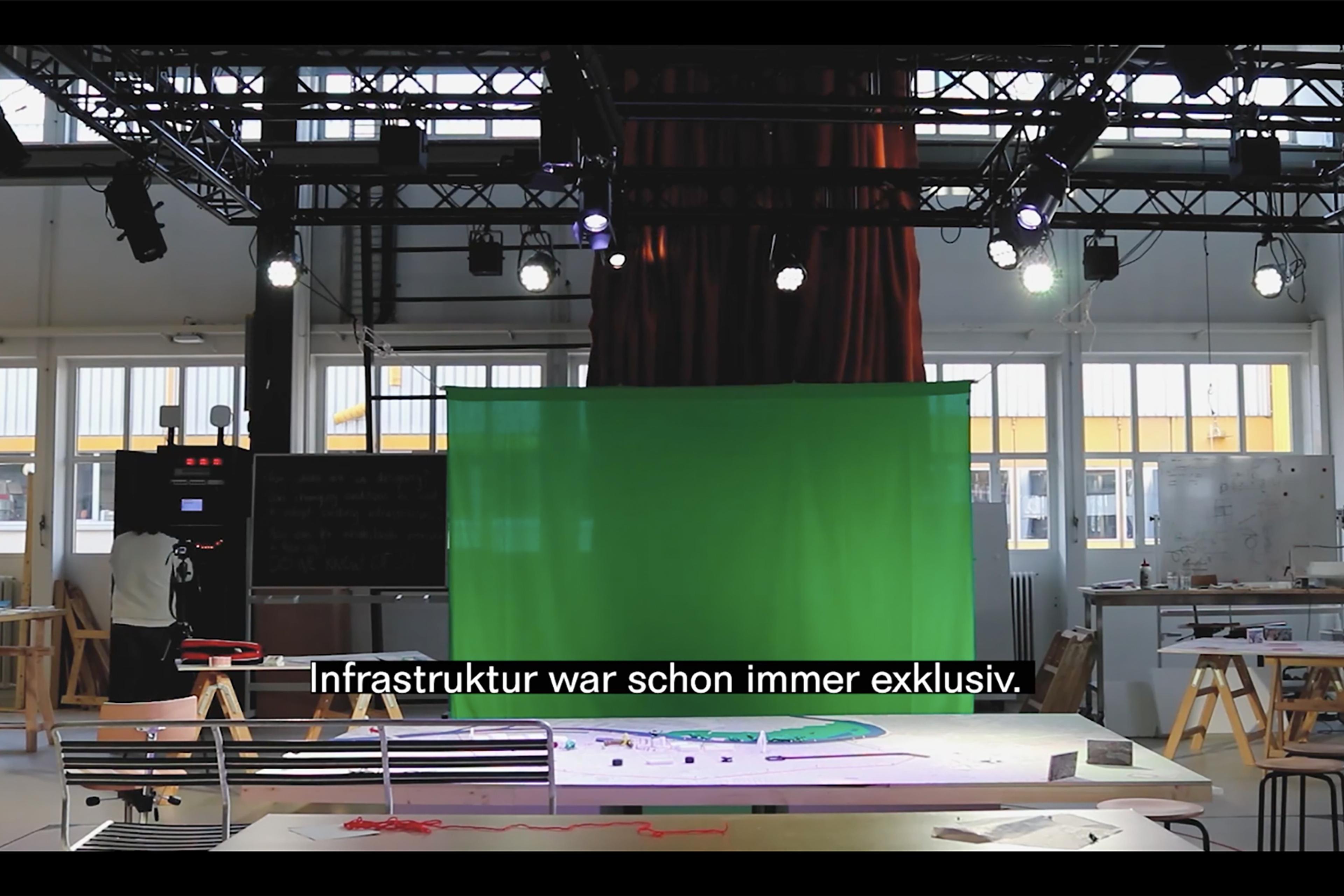 Besides, the work on the collective movie helped to develop the studio as a collective effort, to get to know each other, and to develop tools of self-organization. Students were on the one hand part of a working group, which looked into a certain dimension of infrastructure, and on the other hand they took on extra roles in the production of the collective movie. The fact that we could not go there due to Covid forced students to find ways to still get close to the place. They worked a lot with found footage, redrew places they engaged with, used digital animation, did interviews with locals, even got digital city tours, or used a green screen to enter the scene themselves.