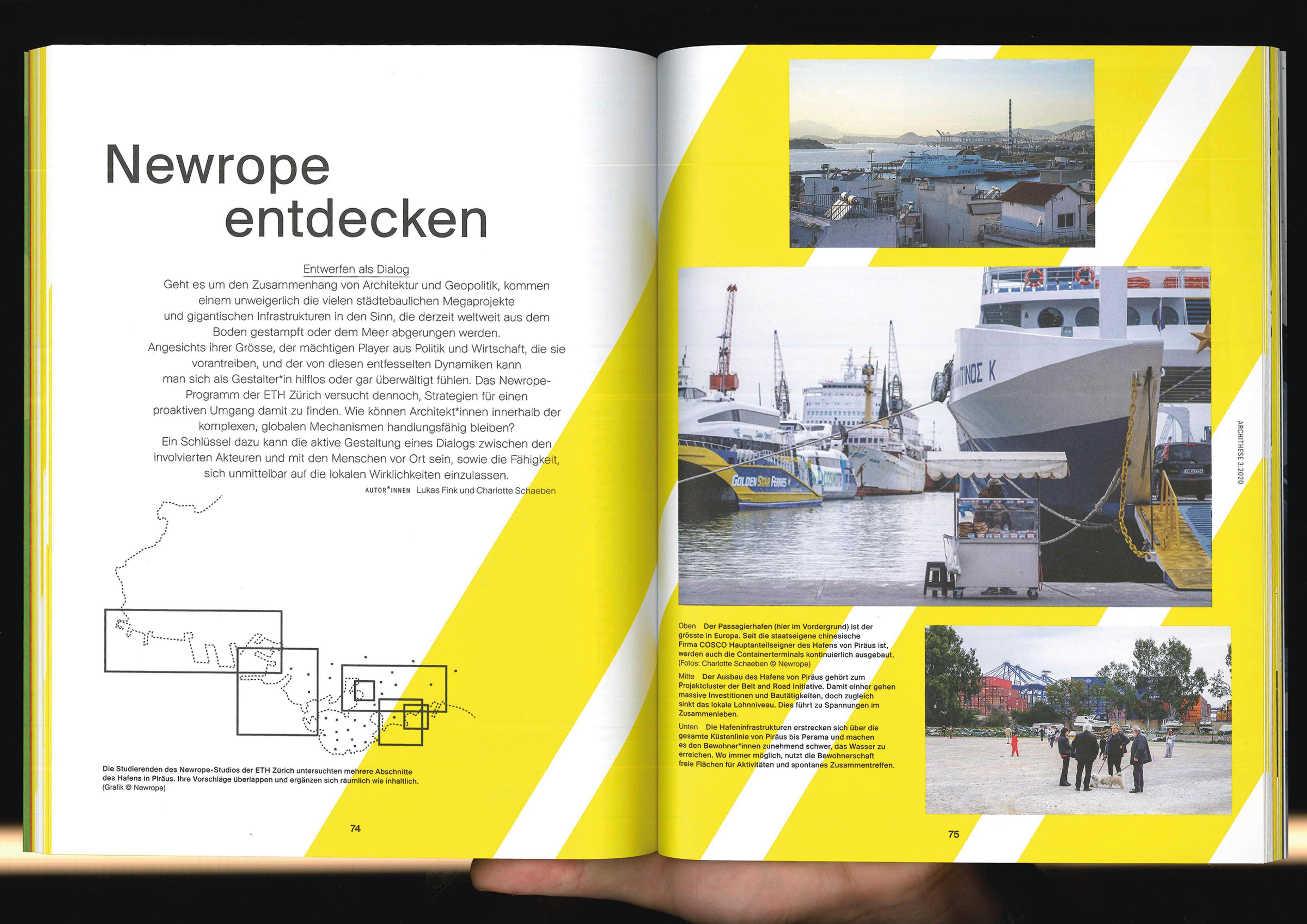 Talking about geopolitics in architecture can quickly turn into a horror show of urban mega-projects being pulled out of the ground. This article, published in Swiss architecture journal Archithese, is a reflection on NEWROPE’s Studio Piraeus and describes its attempt to overcome a mere description or rejection of large scale infrastructural developments and related foreign investments. Instead, it points at ways to become active and to design in dialogue with today’s global realities, with a wide variety of people and a sensibility for places.