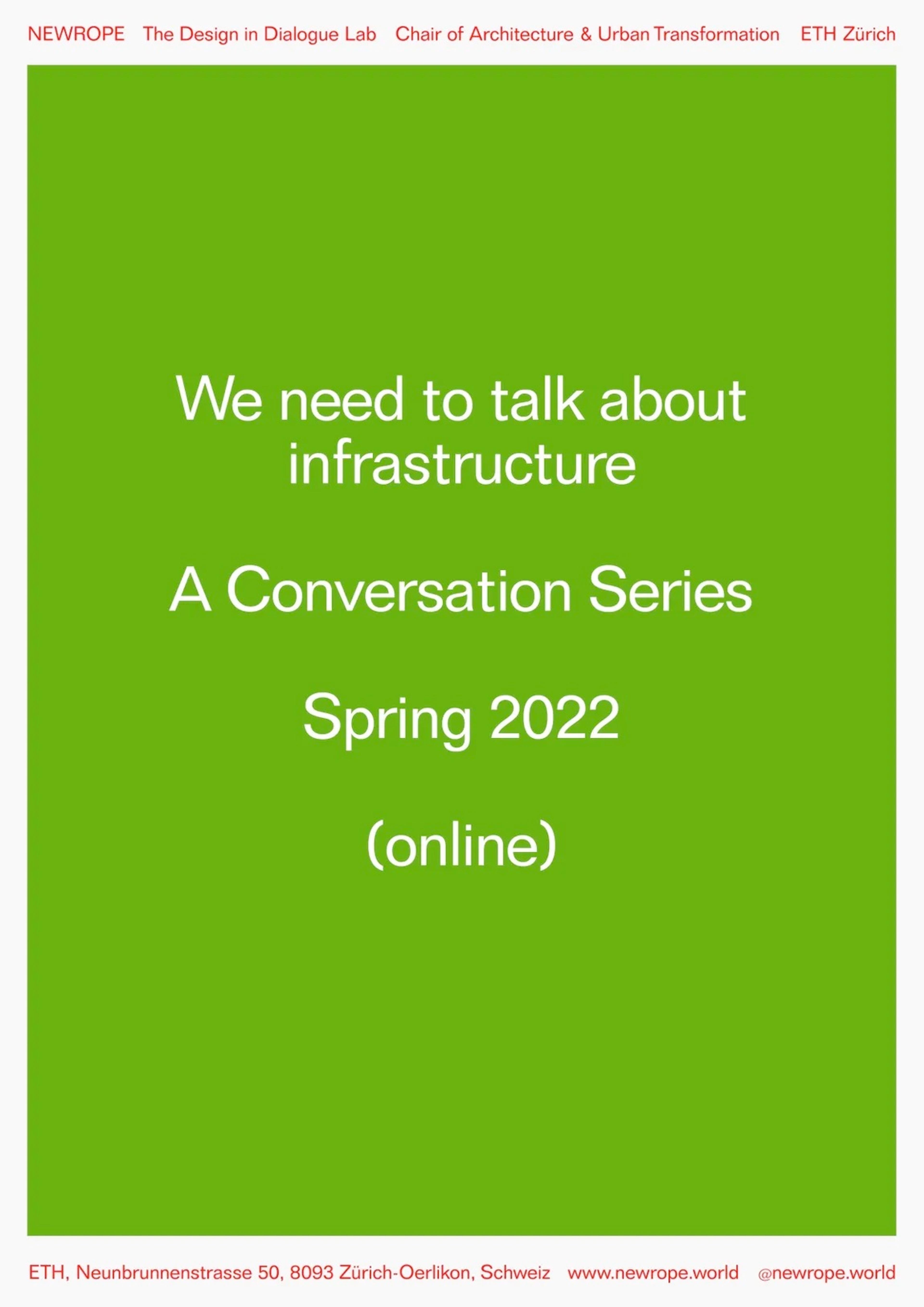 We continue our We Need to Talk About Infrastructure conversation series on April 26; 2022 between 17:00 and 18:00 CET with Patrick Bonzanigo (Lic. iur., attorney-at-law, MAS Spatial Planning ETH Zurich). Click here for the Zoom link.